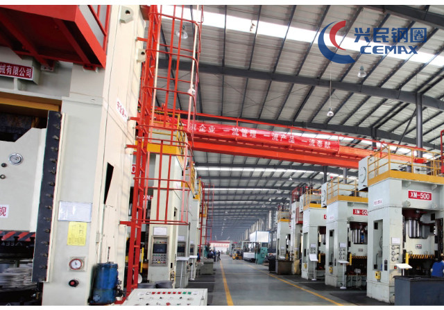 The disc workshops are equipped with 50 sets of YB32-315~1600 ton hydraulic presses and 160 sets of punch presses ranging from 100 tons to 800 tons. Output capacity perday is more than 26,000 pieces. The ventilation hole punching process utilizes advanced technology. The whole process is automatically operated. controlled by PLC indexing devices. The disc truing process uses advanced CNC vertical Iathes with Japanese FANUC control system. All the discs specifications are superior to the national standard, as a result, the products are well received by American and European customers.