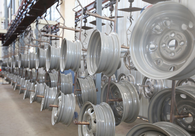 興民涂裝車間具備國(guó)內(nèi)外鋼制車輪涂裝線的工藝水平,其中前處理電泳線采用國(guó)際先進(jìn)工藝,產(chǎn)品防腐性能達(dá)國(guó)際標(biāo)準(zhǔn)。面漆噴涂線采用地面鏈輸送工件方式,靜電粉末噴涂工藝,實(shí)現(xiàn)產(chǎn)品自動(dòng)化噴涂。整個(gè)涂裝車間全部采用機(jī)器人進(jìn)行工件轉(zhuǎn)序,產(chǎn)品直接進(jìn)入庫(kù)房碼垛打包,避免了中間環(huán)節(jié)對(duì)產(chǎn)品的損害。